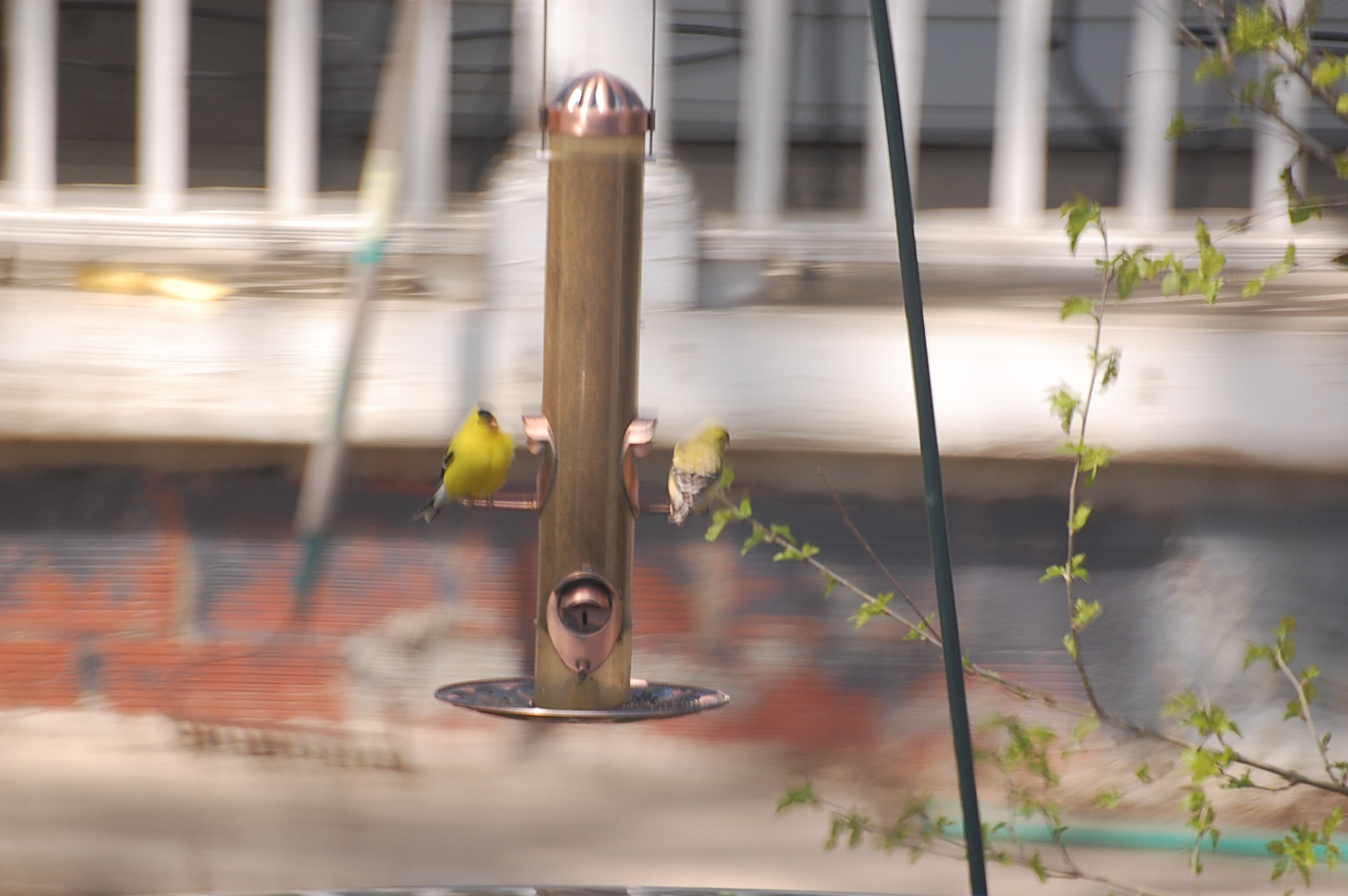 The photo isn't the best, but I'm tickled to have a day of sunshine after so many rainy days and to see the finches visiting my feeder.